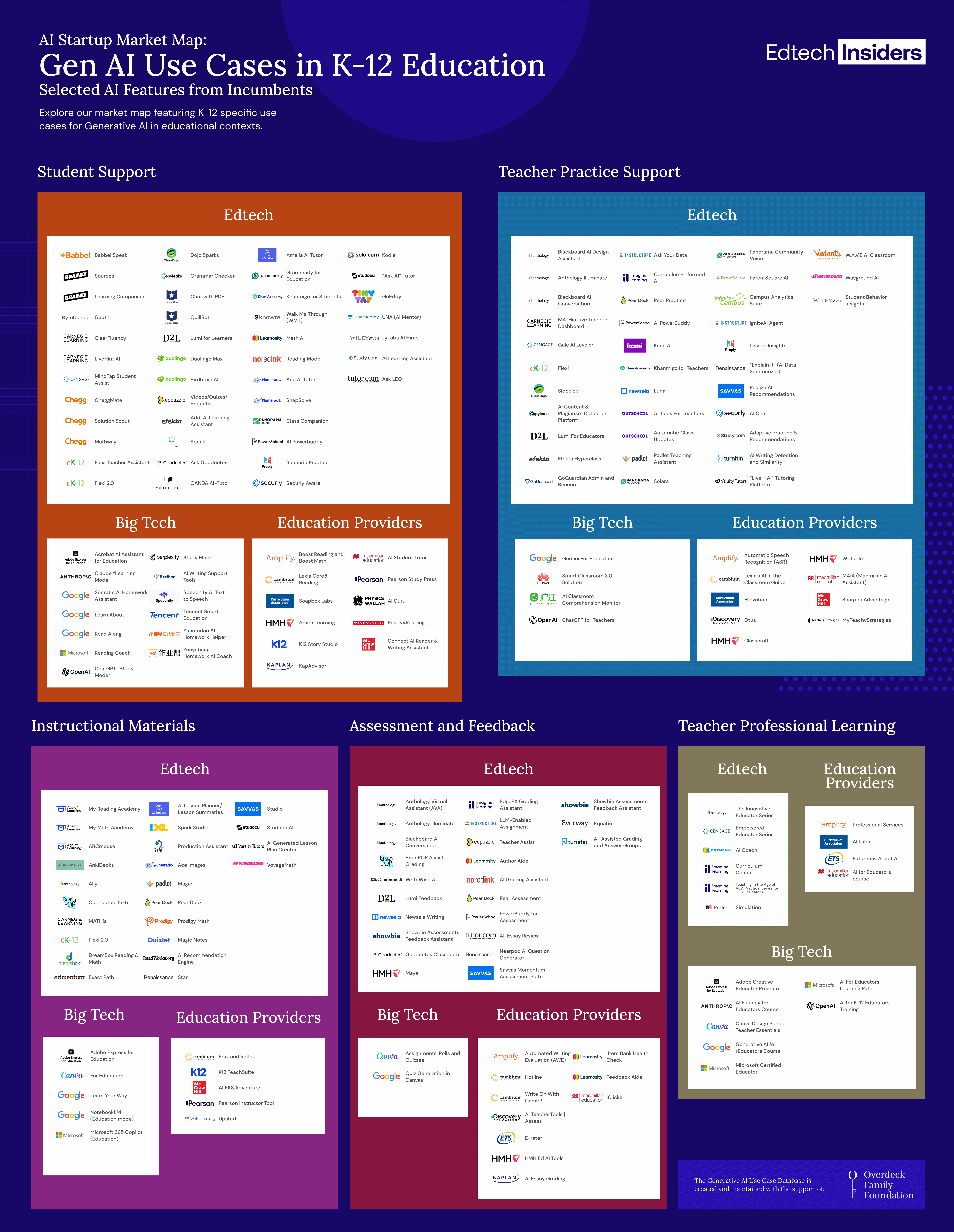 The second is entirely new, tracking incumbent companies across Edtech, Big Tech, and Education Providers who have moved swiftly to support AI in K-12 use cases.